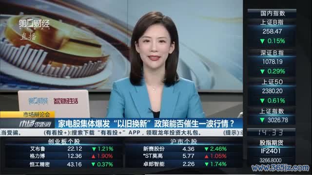 01'56'' 家电板块大幅上扬 业内:以旧换新有望撬动约2700亿销售市场 04-12 22:39