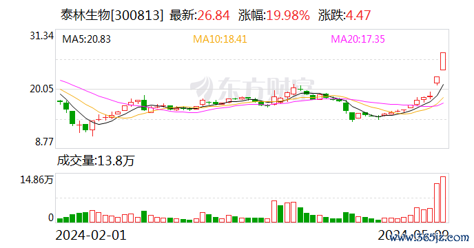 泰林生物披露股票交易异常波动公告称,近期公司经营情况及内外部经营环境未发生重大变化;公司、控股股东和实际控制人不存在关于公司的应披露而未披露的重大事项,或处于筹划阶段的重大事项。