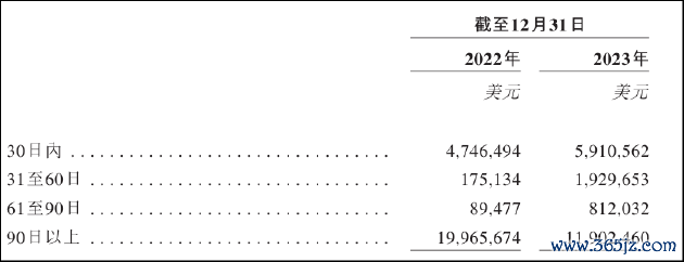 值得关注的是,在流动资产中,应收账款占据了相当的比重。截至2024年2月29日,公司贸易及其他应收款项为2321.03万美元,占全部流动资产的比例为56.24%。从账龄结构看,90日以上应收账款占比接近6成。而根据招股书信贷政策显示,觅瑞集团一般会授出最多一个月的信贷期,可见大部分应收账款已出现逾期现象。